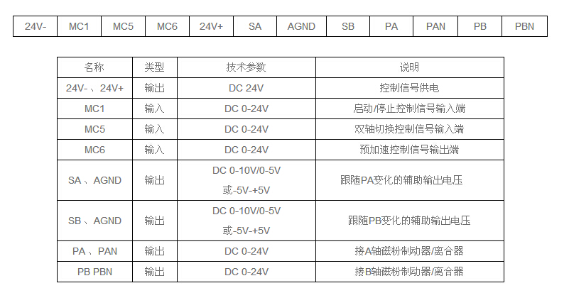 磁粉張力控制器的端子說明