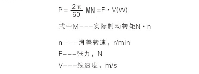 磁粉制動(dòng)器、磁粉離合器的選型一般以所需傳遞最大轉(zhuǎn)矩為依據(jù)來選定,并注意保證實(shí)際使用的滑差功率,應(yīng)小于技術(shù)參數(shù)的允許滑差功率,余量大點(diǎn)更能延長使用壽命。計(jì)算公式: