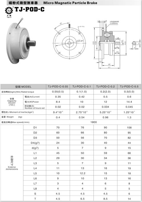 TJ-POD-C型微型磁粉制動器型號可按扭矩規格分類: