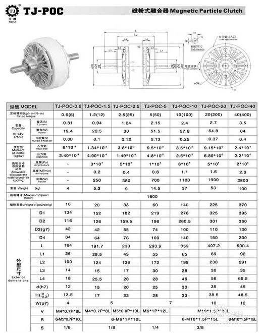 磁粉離合器廠家規(guī)格參數(shù)手冊-東莞天機(jī)傳動