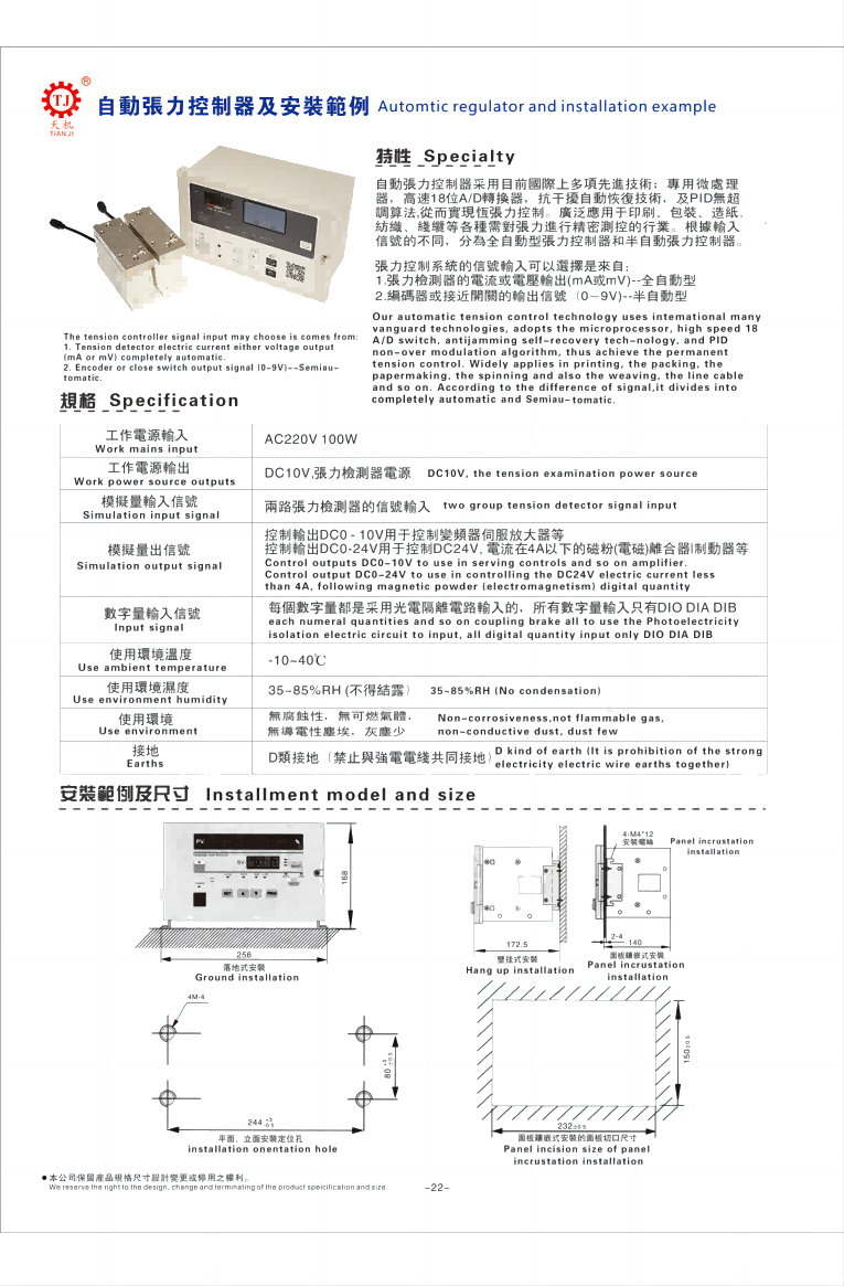 全自動(dòng)張力控制器廠家規(guī)格及安裝范例、尺寸如下(全自動(dòng)張力控制器安裝接線圖方法)